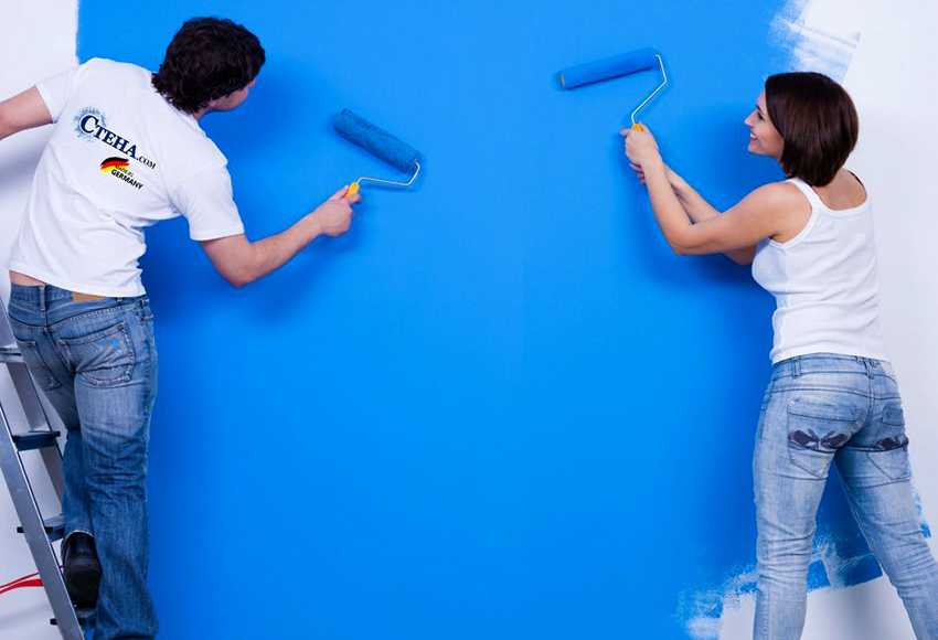 Спустя 24 часа после наклейки, если материал достаточно просох, можно переходить к покраске. Она происходит в 2 слоя, первый наносится непосредственно после просыхания, второй, спустя 12 часов после нанесения первого. Для этого процесса используется водоэмульсионная краска, которая разбавляется водой. Как и клей, её можно приобрести уже готовую к процессу.