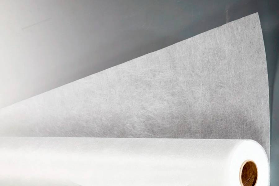 Толщина этого материала небольшая — он полупрозрачный. Из-за своего внешнего вида получил название «паутинка». Продается в рулонах шириной 1 метр, имеет разную плотность — от 20 г/м2 до 55 г/м2. Плотность подбирается в зависимости от области применения. Для внутренних работ чаще используется 30-40 г/м2.