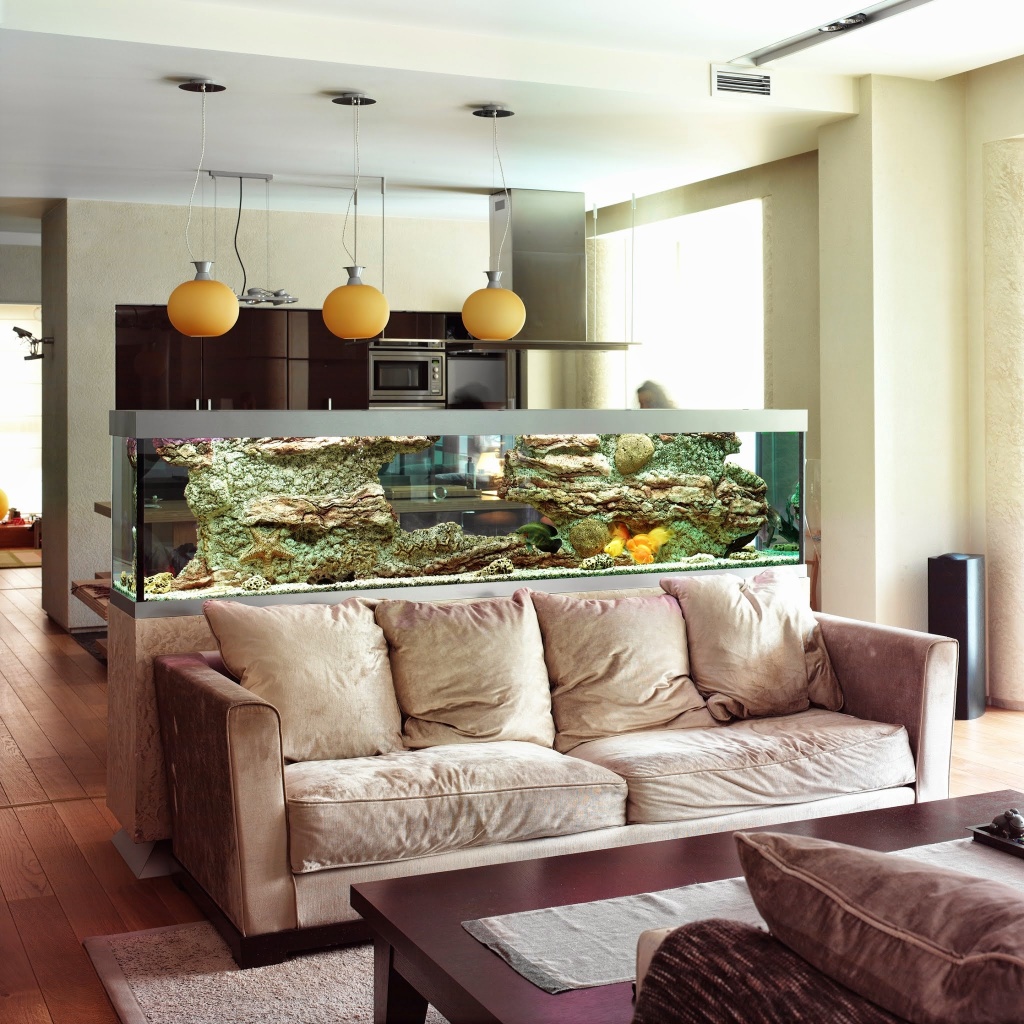 Большой аквариум, как средство зонирования кухни-студии