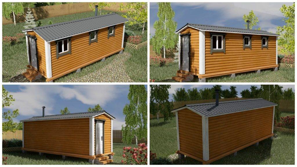Для возведения стен используется обрезная доска из лиственных пород деревьев толщиной до 6 см. Мобильная экономбаня не требует обустройства фундамента, но для повышения устойчивости конструкции рекомендуется использовать дополнительную деревянную основу из досок толщиной до 5 см.