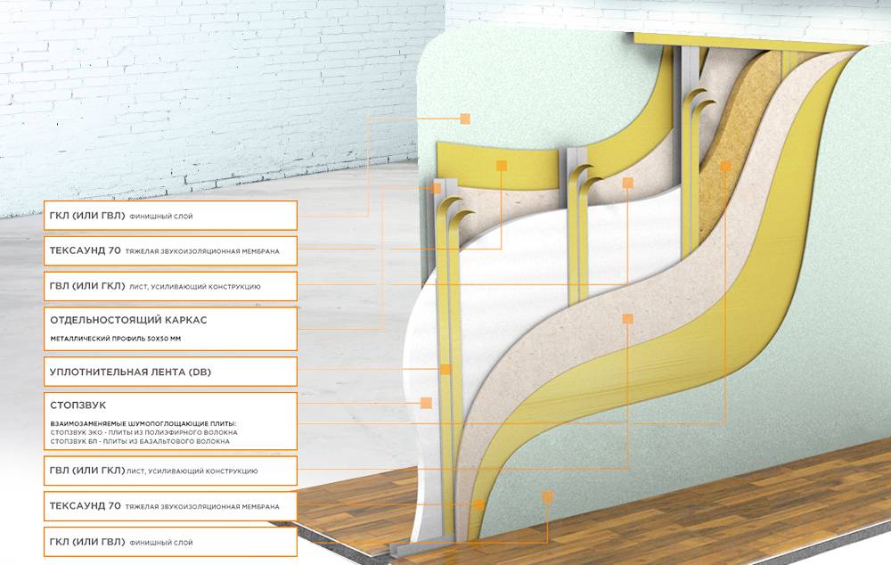 Пример эффективной шумоизоляции (для кирпичной стены в малоэтажном доме).