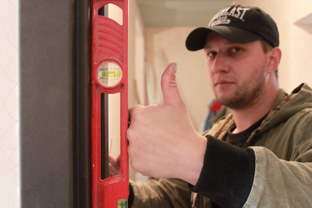 На этой стадии заручаемся поддержкой помощника – в одиночку правильно смонтировать металлическую дверь невозможно.