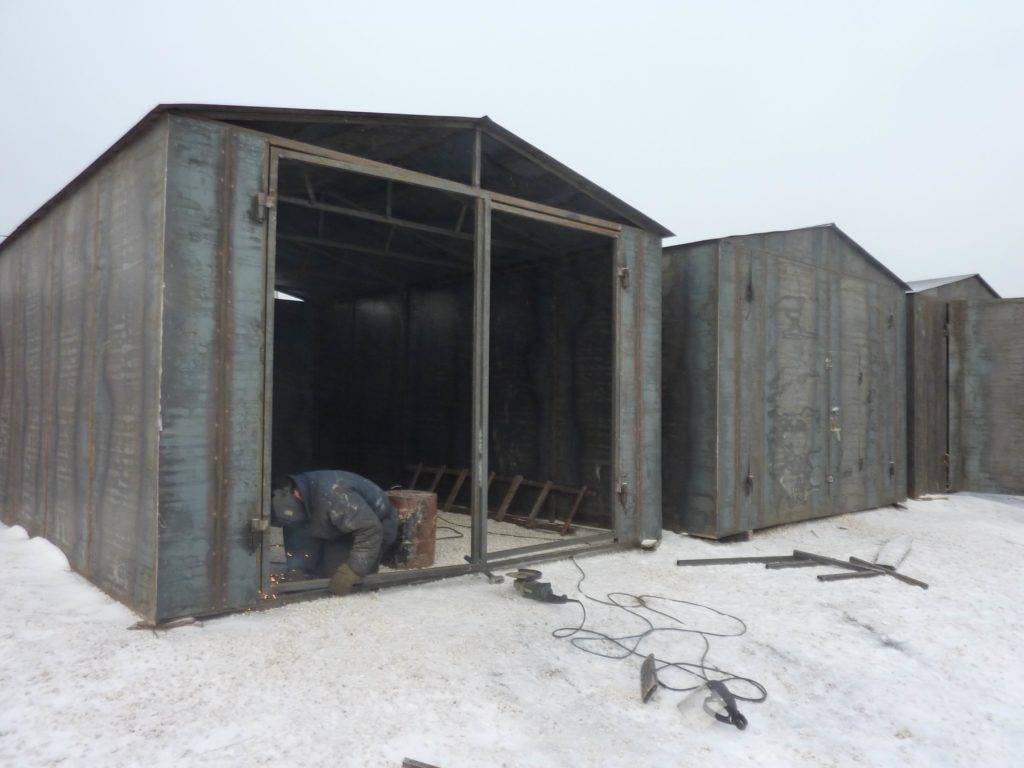 Ниже на фото приведен пример, как собрать металлический гараж б.у. своими руками, покупать такой гараж лучше «во время очередного сноса» незаконных построек. Люди пытаются избавится от этой проблемы, продают такие гаражи за дешево, цены на б.у. гаражи начинаются от 8.000 рублей.