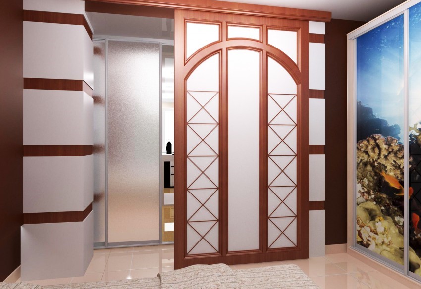 Для функционирования двери устанавливаются специальные рельсы на роликах. Данная модель подходит для тесных помещений, где дорог каждый сантиметр полезного пространства и распашные конструкции не уместны.