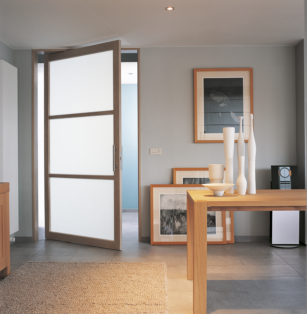 Этот тип встречается крайне редко, так как способ открывания не предполагает наличие в конструкции стекла. Тем не менее некоторые производители создали и такие двери со стеклом. Выглядят они очень стильно и добротно, но их стоимость при этом очень высока.