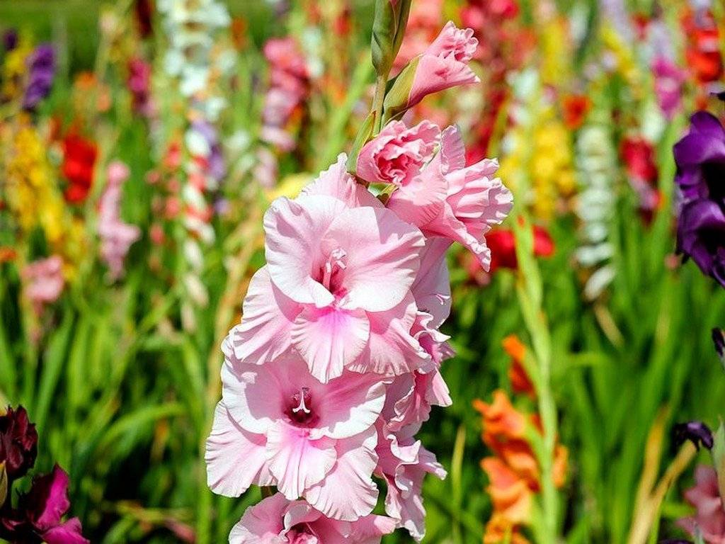 Луковичное растение с крупными колосовидными соцветиями украшает дачу начиная со второй половины лета. Лучшее место для посадки — солнечные, хорошо проветриваемые участки территории с песчаной почвой. Гладиолусы отличаются большим разнообразием расцветок, встречаются махровые разновидности.
