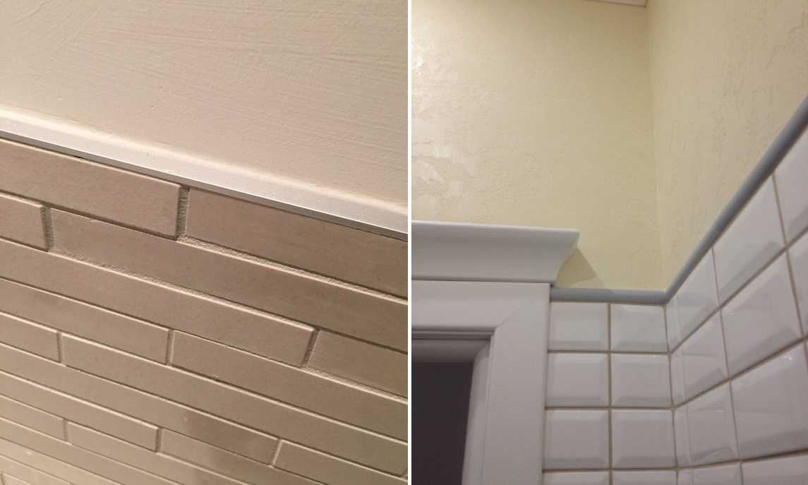 Если плитка лежит не до потолка, переход можно оформить при помощи молдинга