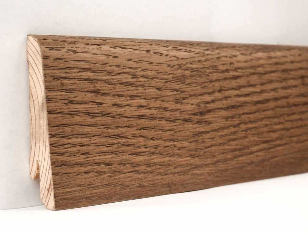 Благодаря многообразию цветов и оттенков, а также наличию большого числа профилей, такой плинтус можно подобрать под любой паркет или массивную доску. Ширина варьируется от 4 до 9. 5 см, толщина — от 1.5 до 4 см, длина – 2.4/2.5 м.