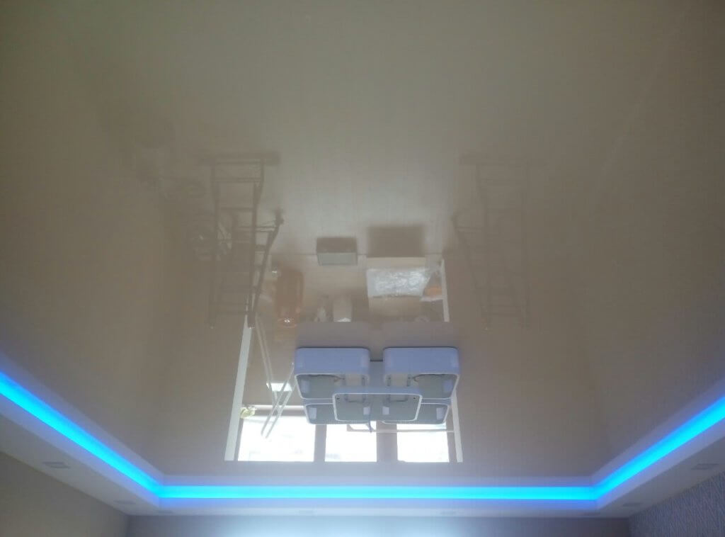 С помощью светодиодной ленты можно создать оригинальный и красивый глянцевый натяжной потолок с подсветкой, размещенной одним из четырех способов: