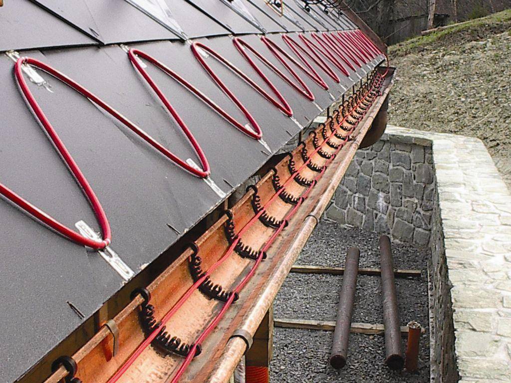 Правильно выполненная система наружного водостока надёжно защищает кровлю, стены и фундамент здания от проникновения в них воды. В холодное время года во время частых оттепелей может произойти замерзание сливных труб водостоков, поэтому вода не будет эффективно удаляться. Чтобы такой проблемы не возникало, можно установить обогрев этих элементов. Для этого используется саморегулирующийся или резистивный кабель, который крепится к водостокам и трубам. Проходящий по кабелю электрический ток вызывает его нагревание, в результате чего элементы водосточной системы остаются тёплыми, поэтому вода в них не замерзает.