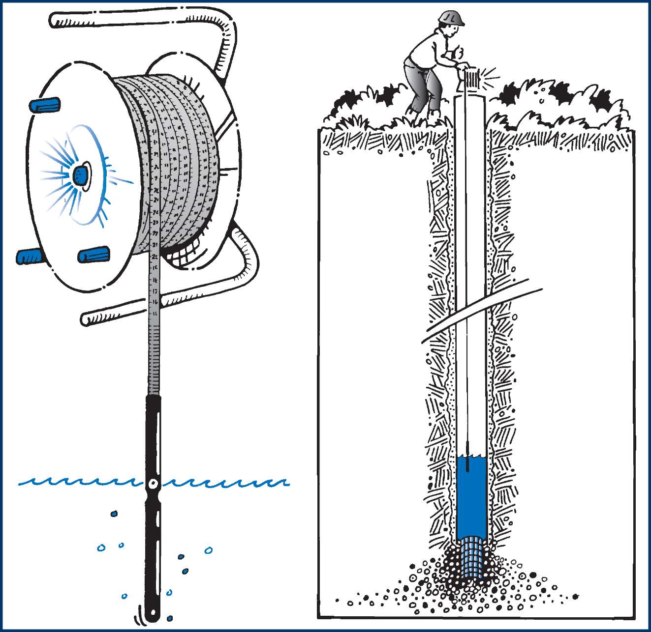 - Проконтролировать расстояние от водного горизонта до поверхности с помощью рефлектора или грузила;