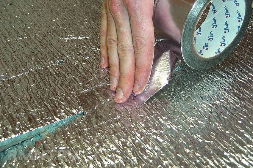 Поверх такого утеплителя следует класть фольгированную ленту. Швы между отдельными ее частями рекомендуется проклеивать скотчем. Цена на нее не особо большая, а эффективность на лицо.