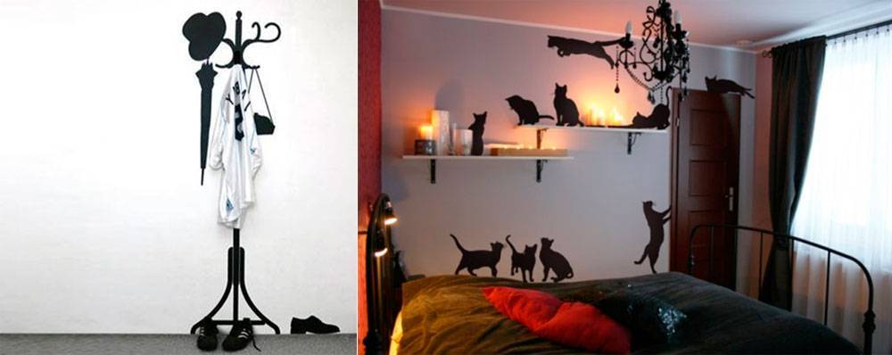 Здесь и различные цветовые решения, и интересные сюжетные линии, и, что самое важное, если посмотреть фото наклеек на стену, то можно увидеть, насколько разнообразных форм они бывают.