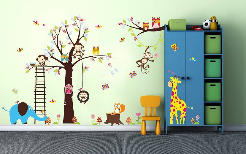 Отделку поверхностей наклейками можно успешно использовать и в детской. Цветы, животные, автомобили или любимые персонажи из сказок очаруют воображение.