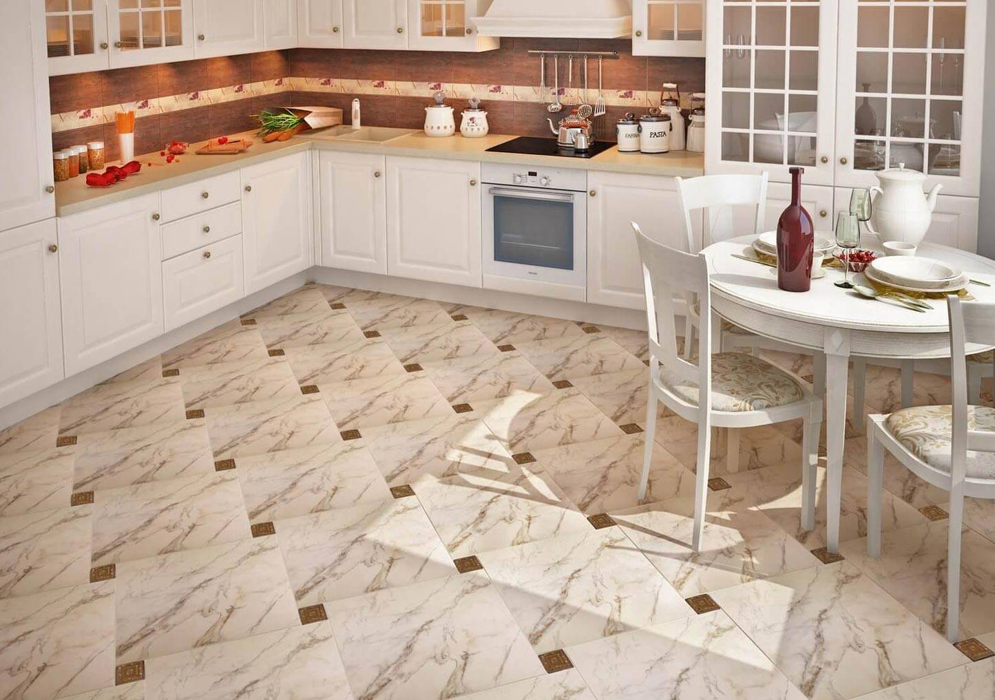 В связи с тем, что кухня — комната с повышенной влажностью, резко меняющейся температурой и подлежит частой уборке, поэтому нужно тщательно подбирать материал для пола.