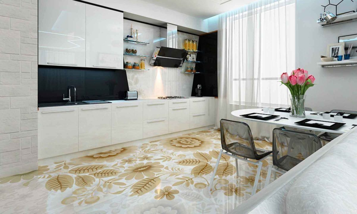 Ремонт пола на кухне производится в полном соответствии с выбранным дизайном. Для некоторых стилей рекомендовано использование других материалов.