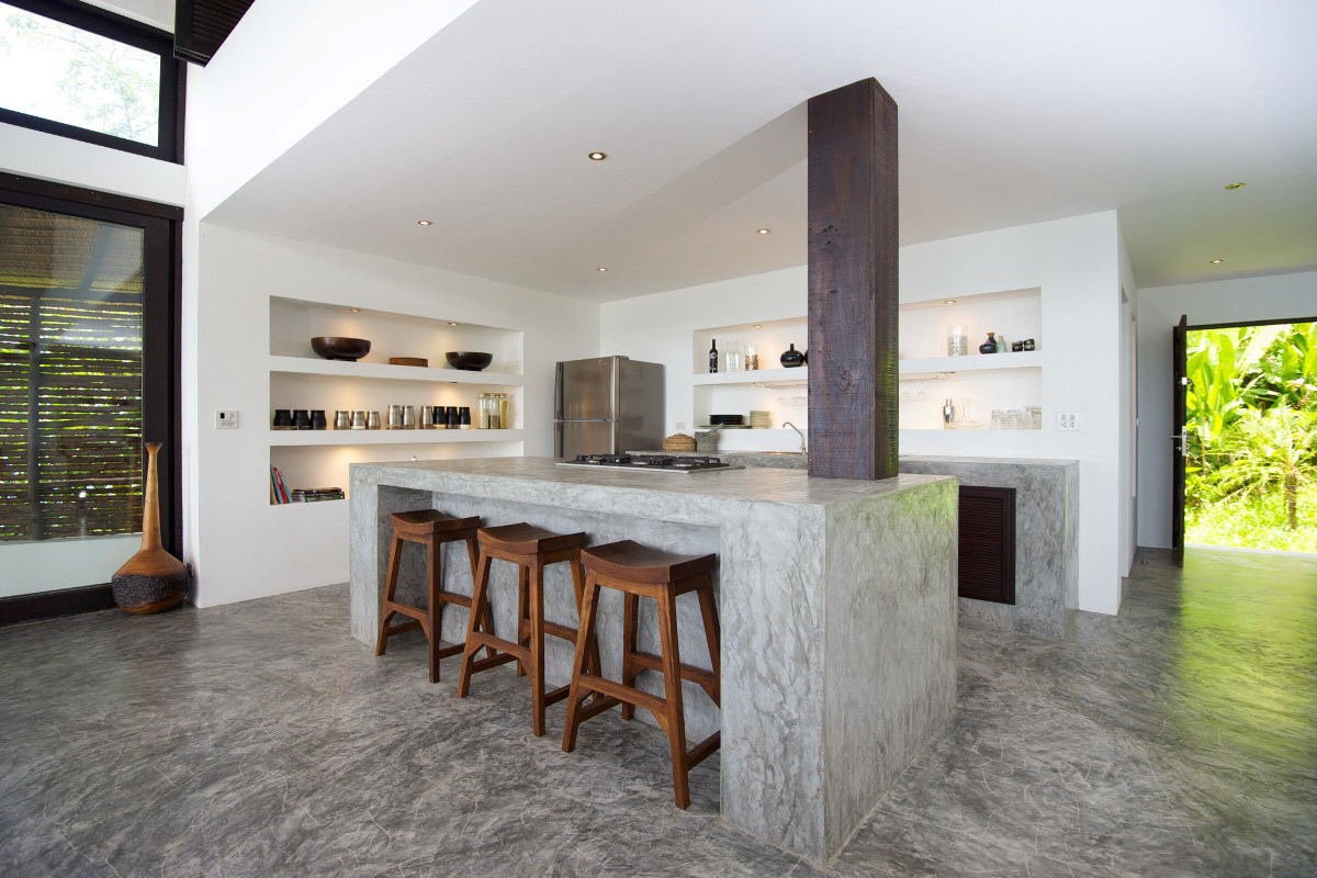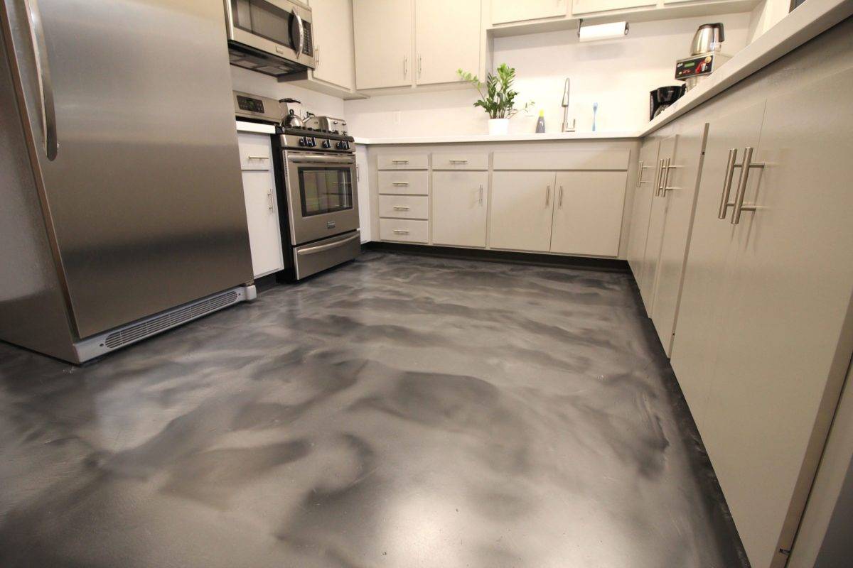 Но такой пол очень холодный, поэтому сразу нужно предусмотреть его подогрев. Еще он очень твердый. Посуда, упавшая на него, точно разобьется, а вот пол выдержит и даже не поцарапается.
