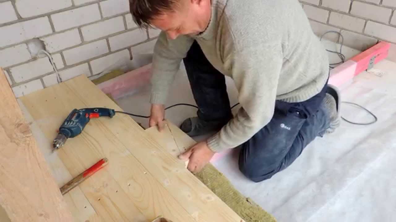Для создания чистового пола можно использовать листы фанеры или массивную доску. Листы фанеры укладываются поверх теплоизоляционного слоя и закрепляются при помощи саморезов по периметру и по диагонали. После чего можно укладывать деревянное напольное покрытие.