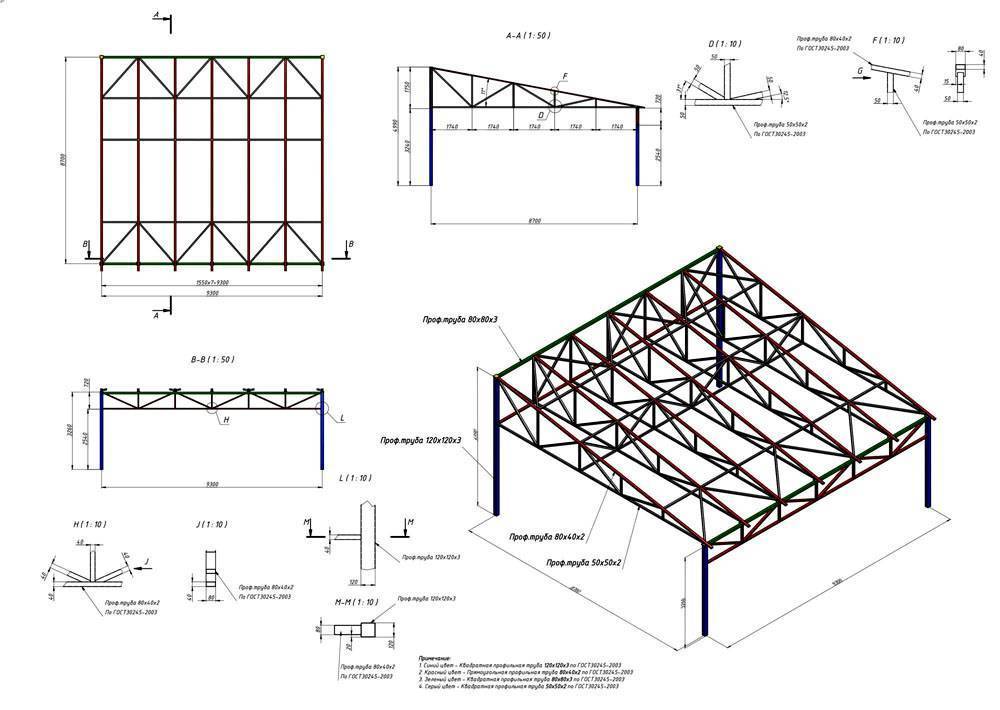 По результатам расчета, параметры предложенного типового навеса при условии строительства в средней полосе страны будут такие: