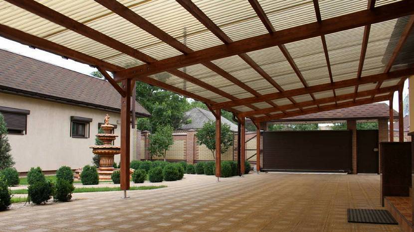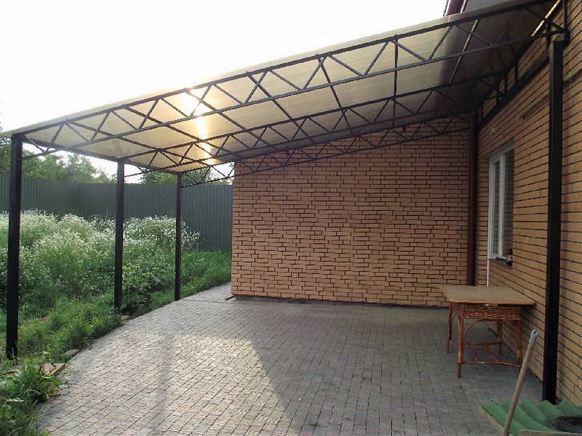 Какой бывает навес из профнастила, примыкающий к дому: фото основных конструкций