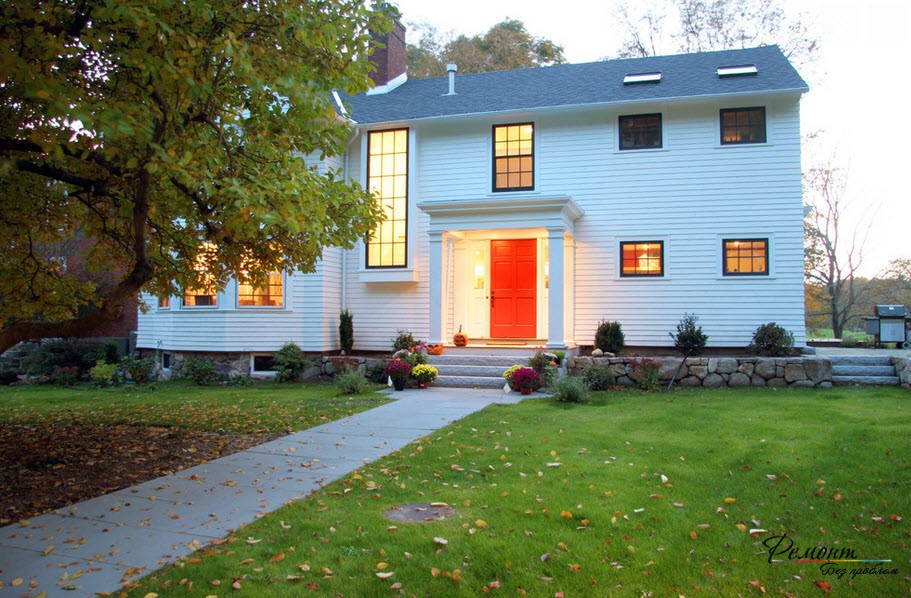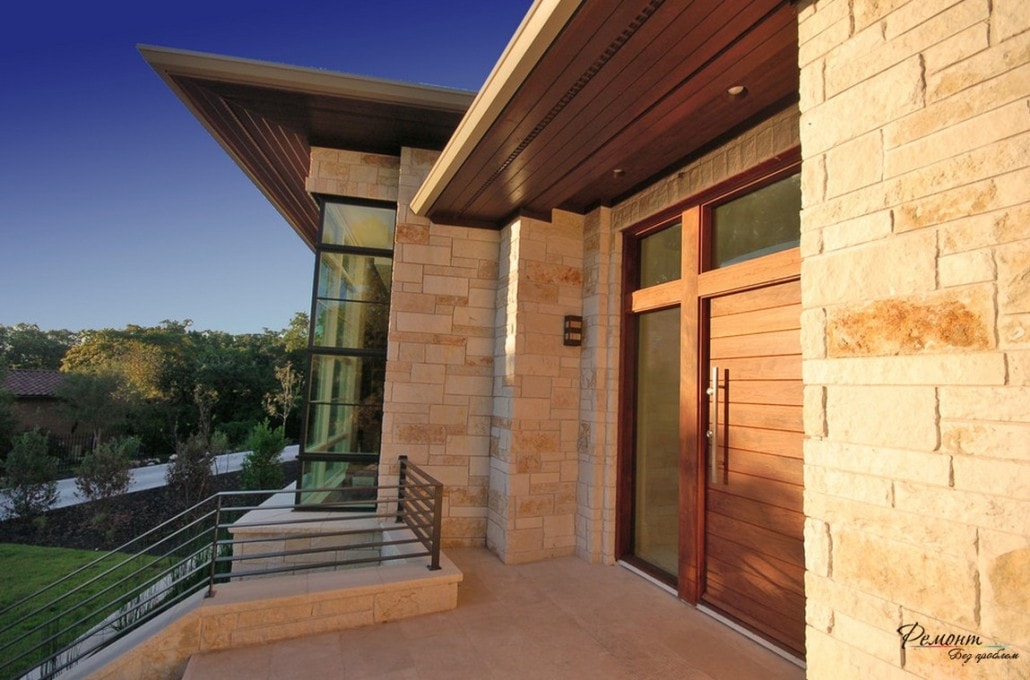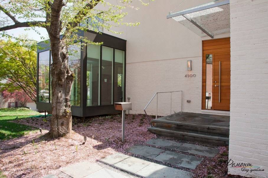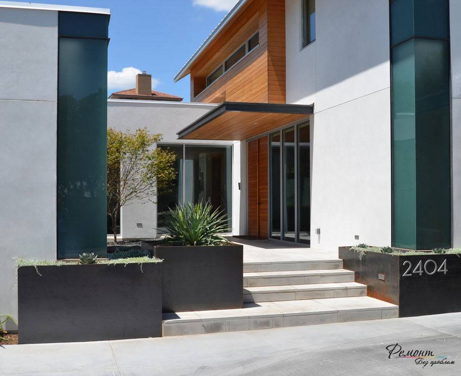 Наличие специального навеса положительно сказывается сразу в нескольких моментах. Первый из них – это защита входной двери от отрицательного воздействия осадков и ультрафиолетовых лучей солнца. Второй – защита человека от дождя, града или снега во время входа и выхода из здания. Третий – эстетическое предназначение, декоративное украшение для совершенного экстерьера.