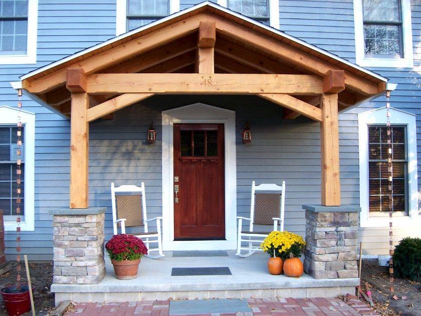 Если вы собрались сделать козырек над крыльцом своими руками из дерева, то должны разобраться в используемой древесине. Древесина не так долговечна как металл. Но если у вас дом из бруса, то навес отлично дополнит его дизайн.