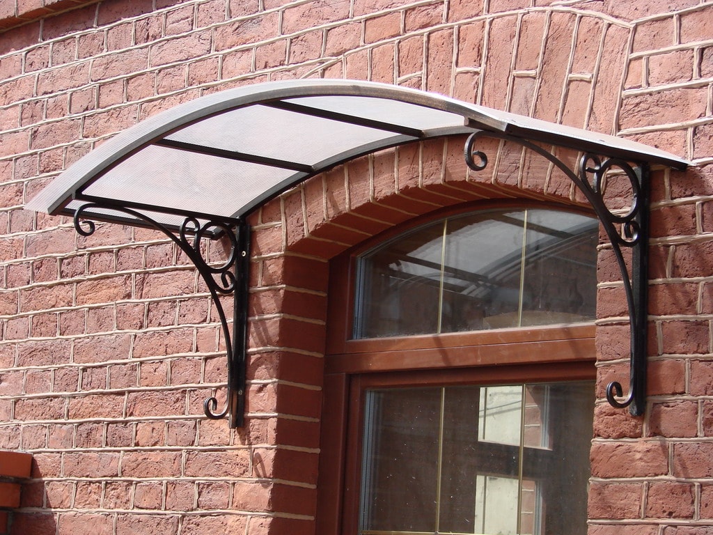 Козырьки из такого материала – довольно бюджетный вариант. Но работать с металлом будет на порядок сложнее, так как необходим сварочный аппарат. Также не стоит забывать о коррозии, которая доставит немало хлопот. Тем не менее стоит отметить, что такие изделия очень долговечны.