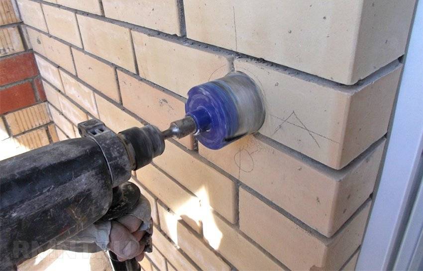 Этим же прибором, но с коронками, делаются углубления в стенах для установки розеток, выключателей, распределительных коробок.