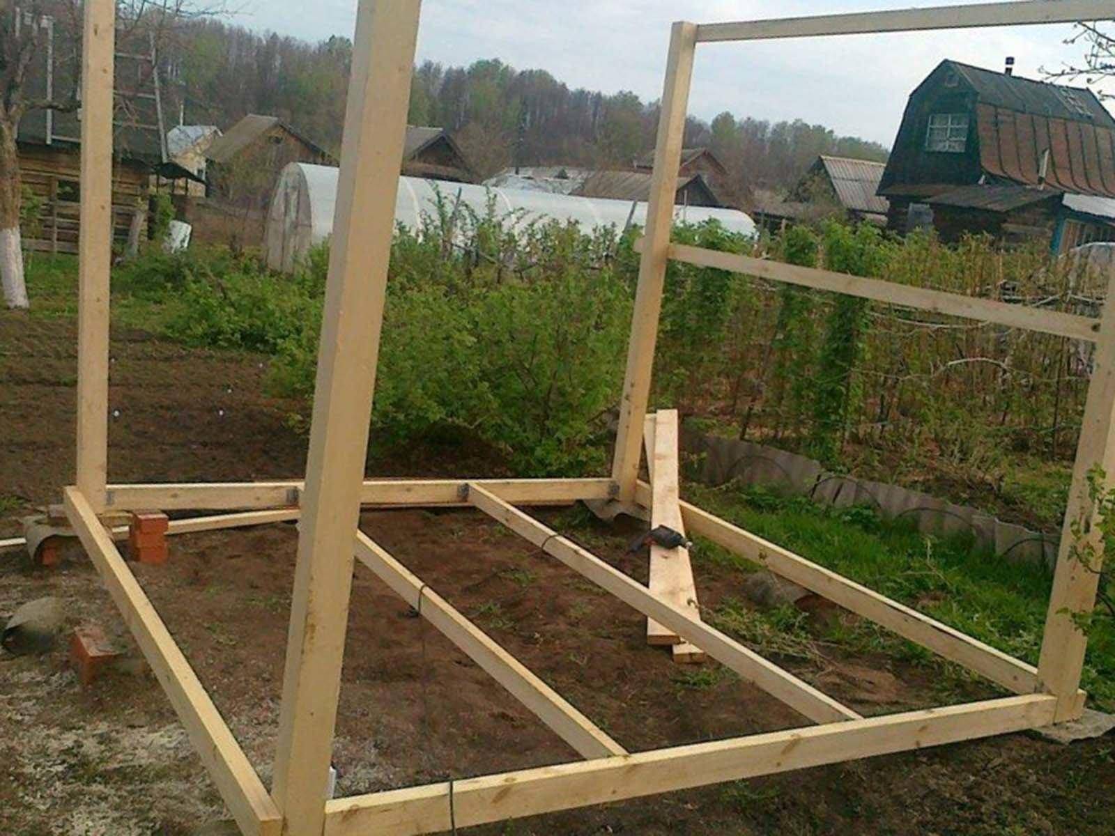 Дальше процесс строительства каркаса и устройство пола рассмотрим более подробно.