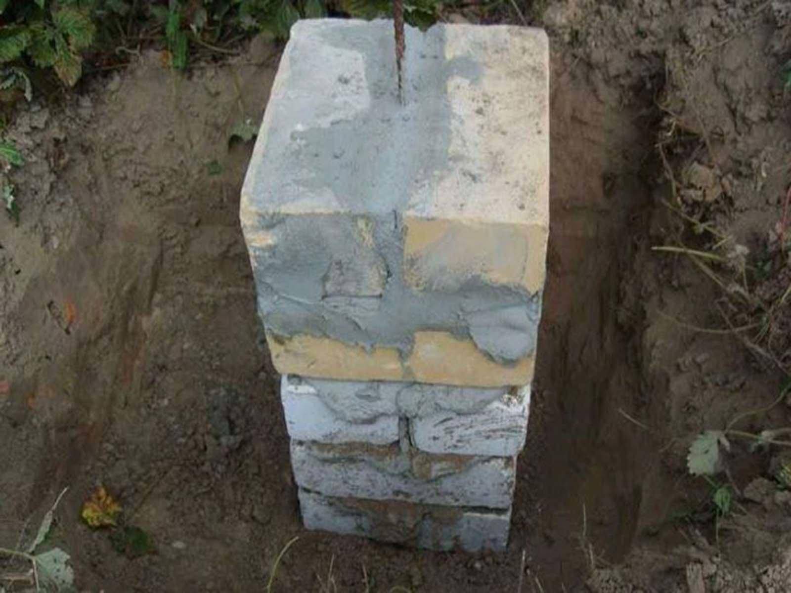 ШАГ 1: фундамент. Для деревянной беседки мы будем использовать фундамент в виде кирпичной кладки. Берем в руки лопату, и делаем квадратную яму размерами примерно 50х50х50. Заливаем дно ямы бетоном и начинаем делать кладку кирпича в шахматном порядке. Два вдоль, два поперек, и так до тех пор, пока кладка не достигнет уровня земли. Потом кладем еще два ряда кирпича, чтобы будущее деревянное основание беседки не контактировало с землей.