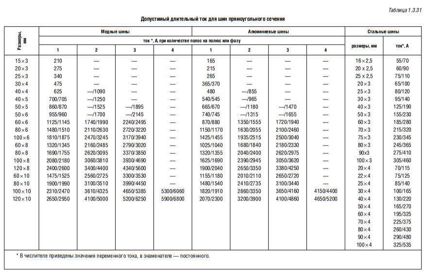 При желании сэкономить и выборе в качестве материала ГЗШ не меди, а стали, берите данные по токам из другой таблицы, относящейся к стальной полосе.