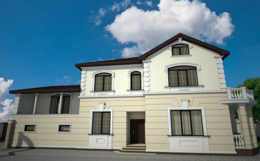 Двухэтажный особняк со светлым фасадомИсточник artfasad.com