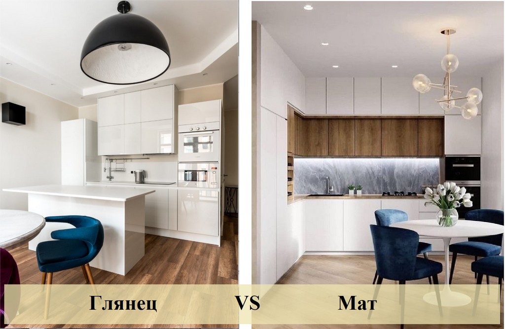 | Как выбрать в зависимости от стиля? | Матовые фасады уместны в любом стиле. | Глянцевые неуместны в традиционных, классических интерьерах. |