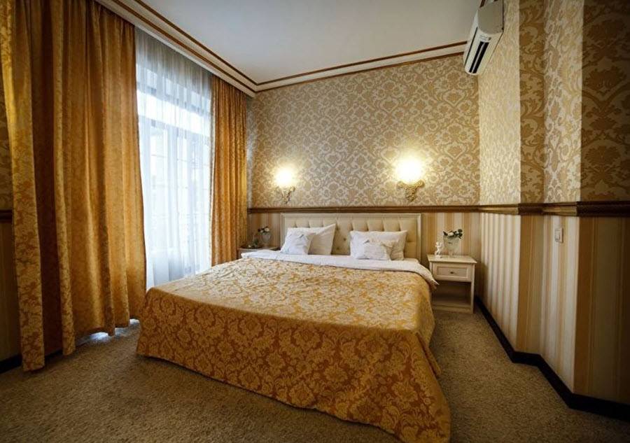 Классика в спальной комнате ассоциируется с умиротворенной роскошью, настраивающей на комфортный отдых. Само собой, вычурные аксессуары или чрезмерно яркие акценты на стенах здесь будут неуместны. Но это не значит, что необходимо остановиться на однотонных вариантах или использовать обои, которые будут выглядеть скучно.