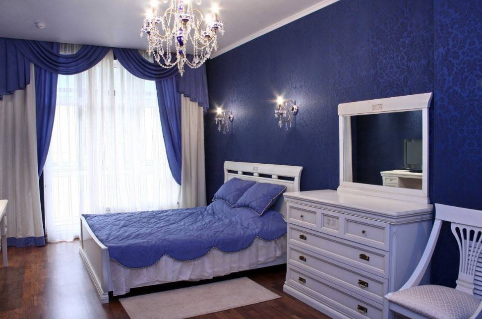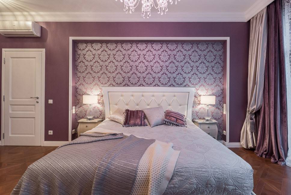 В интерьере классической спальни может присутствовать и акцентное декорирование. Как правило, для выделения одной из стен используют обои темной палитры: серого, синего, бордового, темно-зеленого цветов. Также обои в классическом стиле в спальню могут иметь фиолетовые, коричневые, красные тона.