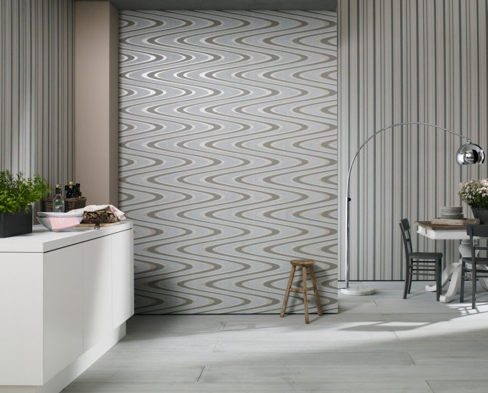 На фото представлены отделочные полотна этой компании в современном интерьере. Производитель применяет долговечный и прочный флизелин, поэтому создаваемые полотна имеют продолжительный эксплуатационный срок. На фото – пример использования в интерьере комбинации отделочных материалов, дающий прекрасное визуальное восприятие.