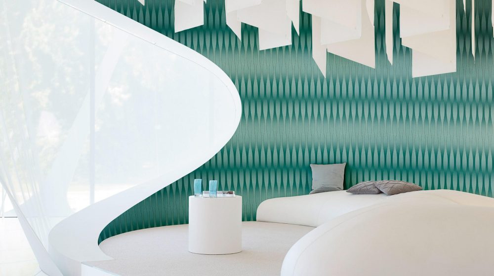Коллекция представлена в огромном количестве цветов и их сочетаний: от буйства ярких красок, контрастных черно-белых и благородных красно-золотых рисунков до нежных оттенков голубого, персикового, зеленого. Их можно использовать и как потолочные обои.
