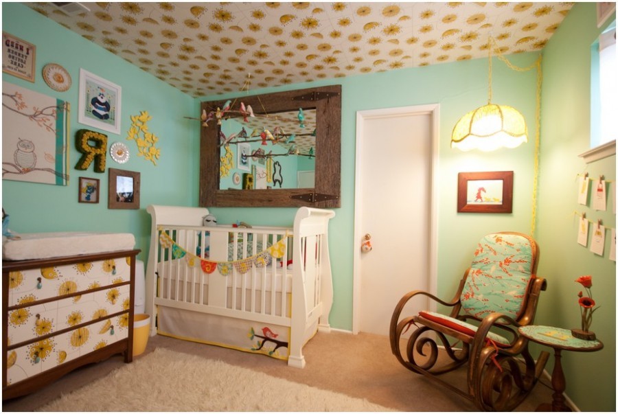 А вот вам и фото жидких обоев на потолке детской комнаты. Детям нравятся такие расцветки. Давайте попробуем догадаться, кто же ежедневно взирает на этот выразительный потолок: мальчик или девочка?