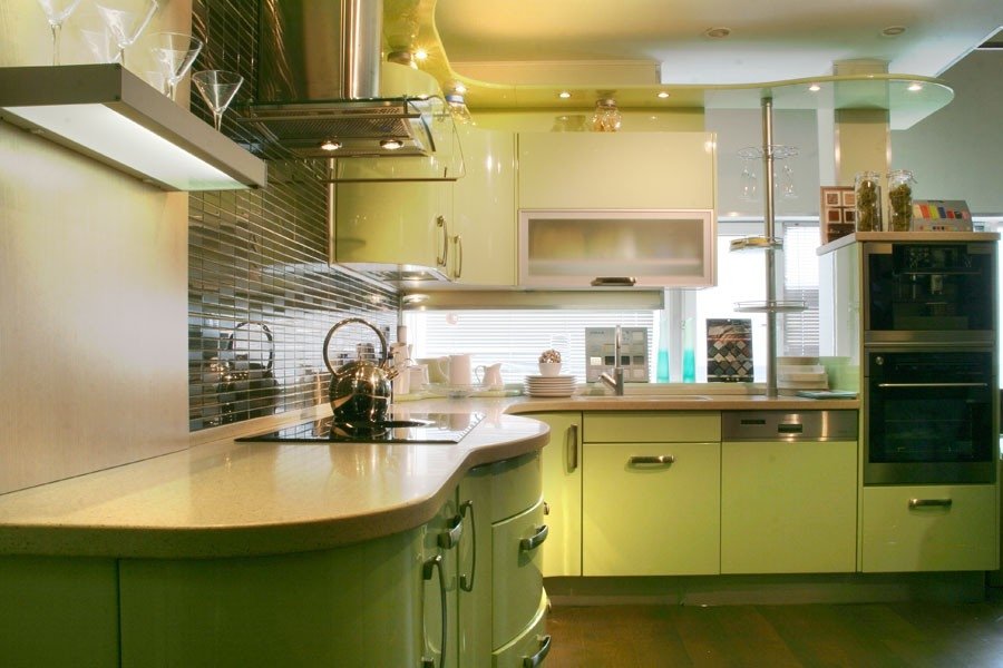 Даже если оливковый цвет вашей мебели разбавлен контрастными по цвету деталями (столешницей, фурнитурой и пр.), не стоит делать стены в той же зелено-желтой цветовой тональности. Излишек мягких зеленых тонов будет действовать как успокоительное и снотворное одновременно, и в такой кухне будет все время хотеться спать, сколько бы кофе вы не выпили.