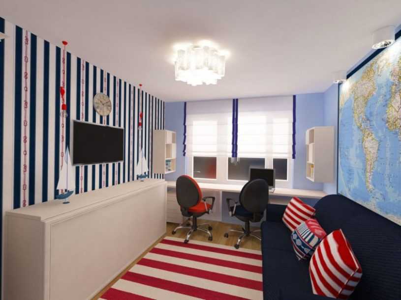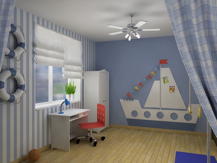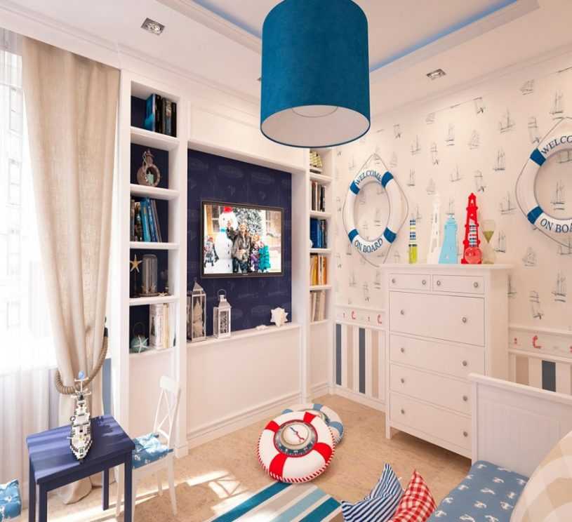 Ребенок, мечтающий стать капитаном или обожающий море, будет счастлив жить в морской комнате. Родители в свою очередь подходят ответственно к выбору деталей интерьера.