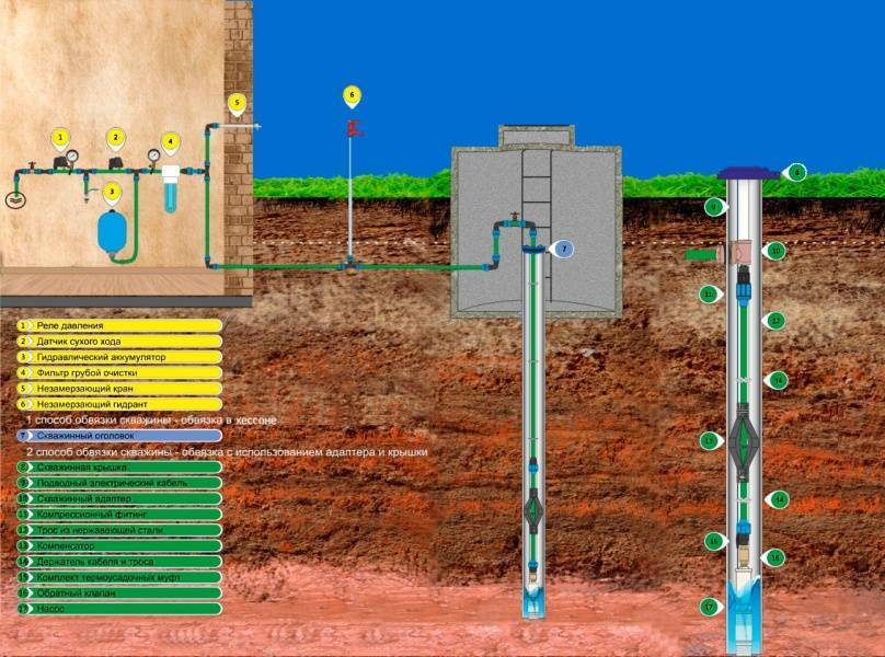 Наиболее важное оборудование, на выбор которого следует обратить внимание, это: насос, кессон, оголовок для скважины и гидроаккумулятор