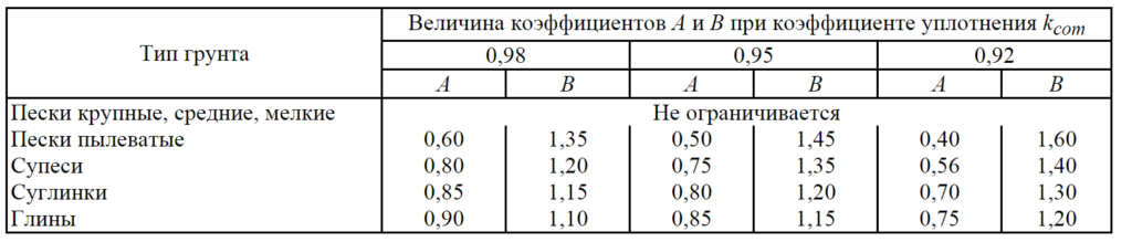 - 12 – 16% – легкие суглинки, коэффициент переувлажнения Kp 1,15%;