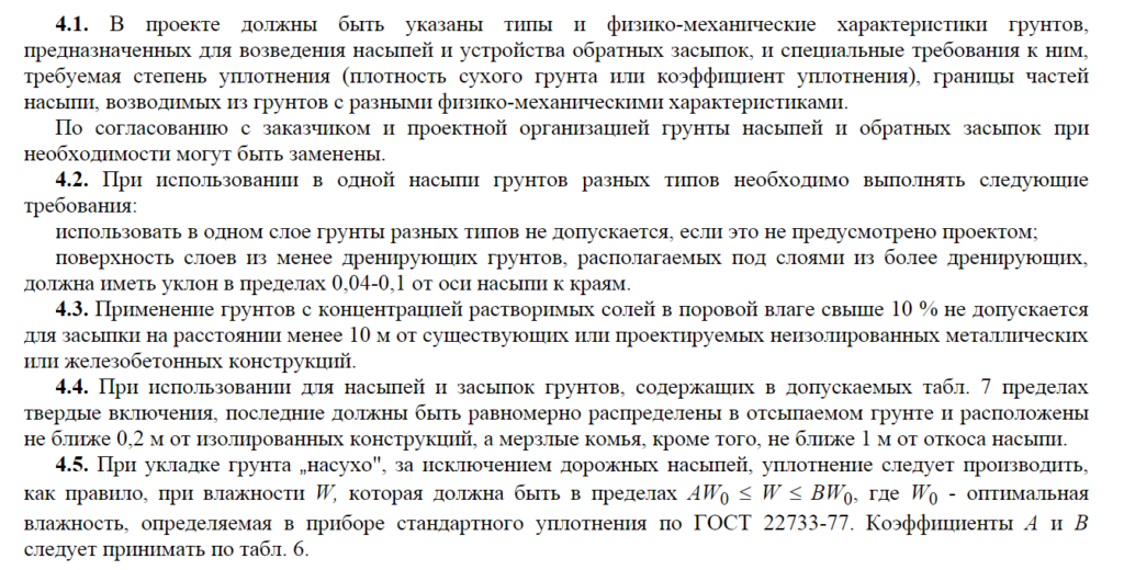 Могут применяться разные типы грунтов. Главное, чтобы они соответствовали нормам влажности и плотности