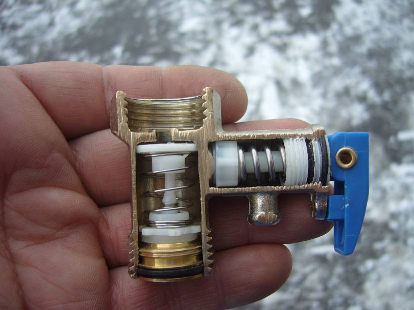 Теплоноситель, циркулируя в приборе, давит на специальную пружину. Под тяжестью давления – она сжимается и выпускает излишки теплоносителя из системы посредством специального патрубка. Когда давление идет на спад, клапан закрывается.