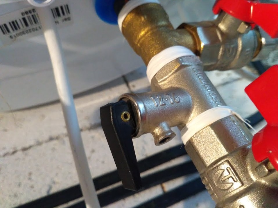 Так выглядит установленный клапан для сброса давления в водонагревателе