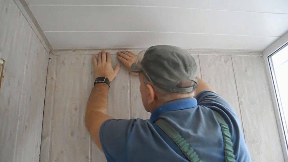 Делают замеры, при необходимости обрезают панель по длине ножовкой. Одним краем панель вставляют в боковой молдинг, прикладывают его к углу и с тыльной стороны крепят его к обрешетке.