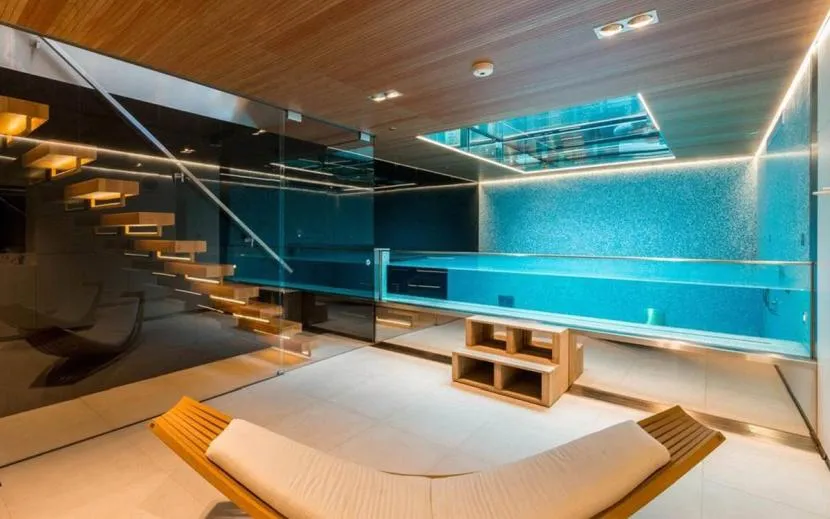 Зал можно оборудовать мини-бассейном (но тогда вопрос об устройстве зала должен решиться заранее, до начала строительства, так как придется рыть котлован под бассейн и производить ввод водопровода и выпуск канализации из бассейна). Бассейн делают из железобетона с облицовкой внутри керамической плиткой.