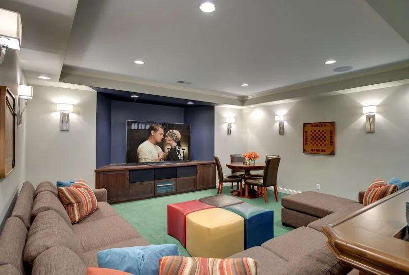 Ключ к успеху кроется в том, что некоторые из функциональных пространств не требуют естественного освещения. И таким комнатам как домашний кинотеатр вместо этого нужна полная темнота во время просмотра фильма. Конечно, такие места являются наиболее подходящими для размещения в подвале.