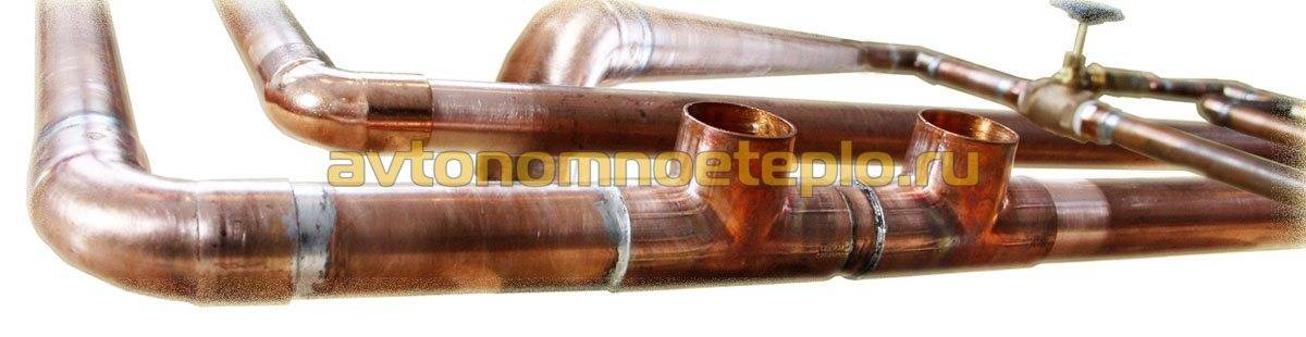 Монтаж обвязки медными трубами требует от мастера определенного профессионализма, а от заказчика существенных материальных затрат. Использование медных труб имеет и свои преимущества:
