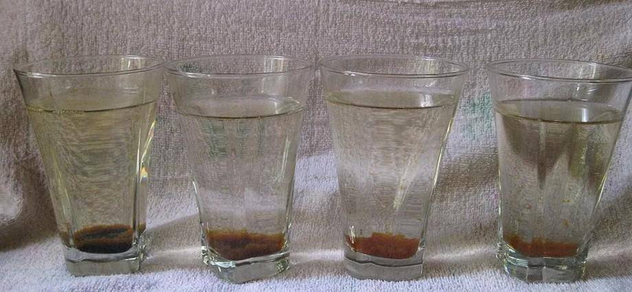 По истечении этого времени осторожно сливают верхний чистый слой, избавляясь от нижнего, загрязненного. Возможно, в процессе отстаивания придется снимать различные легкие примеси с поверхности жидкости